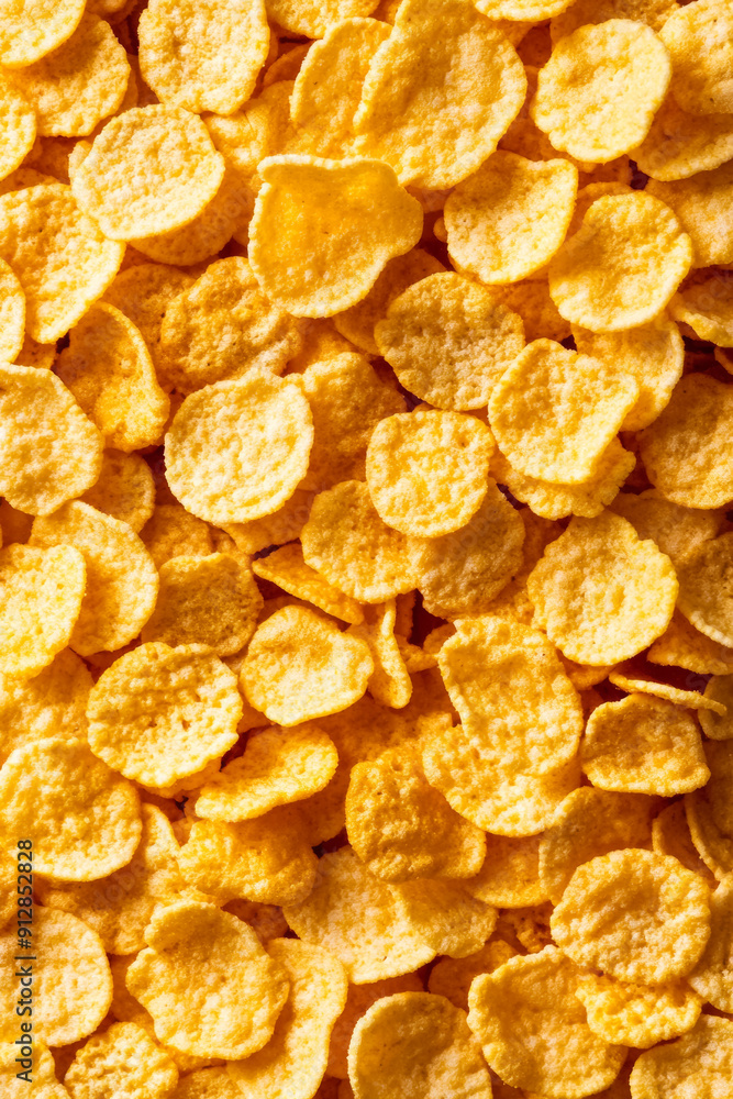 Wall mural : Macro shot of the texture of cornflakes showcasing the golden crispy flakes with intricate patterns