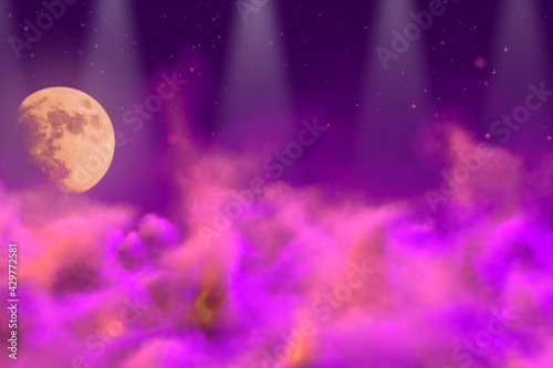 Wall mural : Magic clouds with moon with spotlights design abstract background for designing purposes