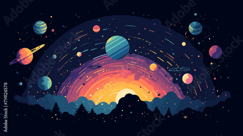 The watermark will not be included on Wall mural.: Magic of celestial events in a vector art piece showcasing phenomena such as meteor showers eclipses