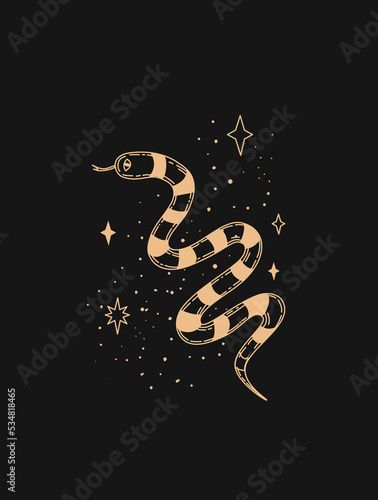 The watermark will not be included on Wall mural.: Magic snake - logo in modern style - snake logo in the starry sky - vector linear icon - boho design tem