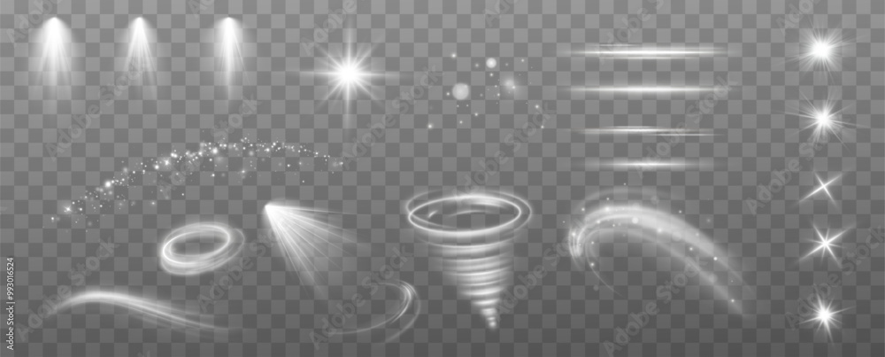The watermark will not be included on Wall mural.: Magic spiral with sparkles - white light effect - glitter particles with lines - swirl effect - texture of c
