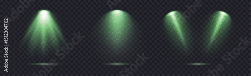 Magic spotlight with green glow and sparkle glitter isolated on dark background with reflection on fWall mural