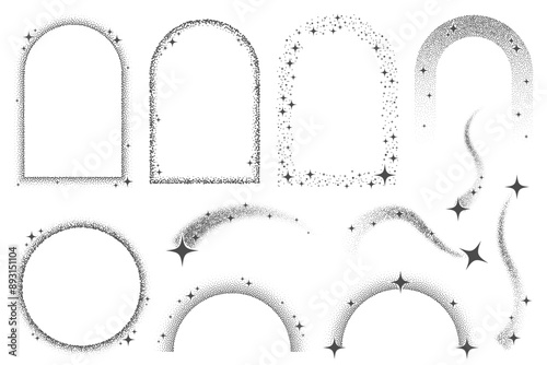 The watermark will not be included on Wall mural.: Magic stars elements with sparks and celestial frames - vector shapes with glitter - bohemian mystic g