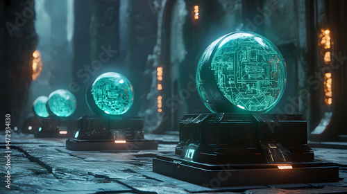Wall mural magical relic vault glowing orbs 3d render scene video game concept background illustration digital  - Wall murals Wall mural magical relic vault glowing orbs 3d render scene video game concept background illustration digital - Wall murals