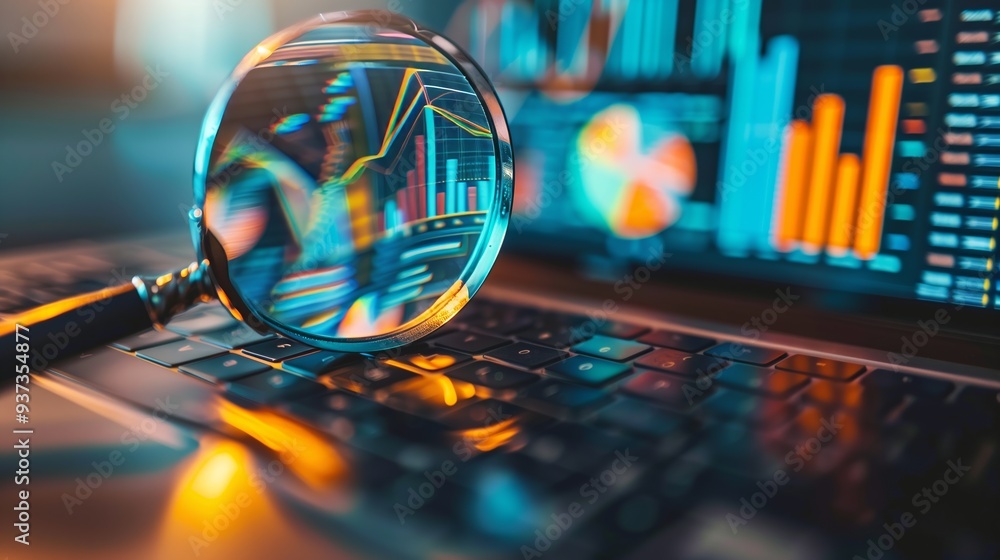 Wall mural magnifying glass or lupe placed on the laptop or notebook device keyboard, enlarging the website tra - Wall murals Wall mural magnifying glass or lupe placed on the laptop or notebook device keyboard, enlarging the website tra - Wall murals