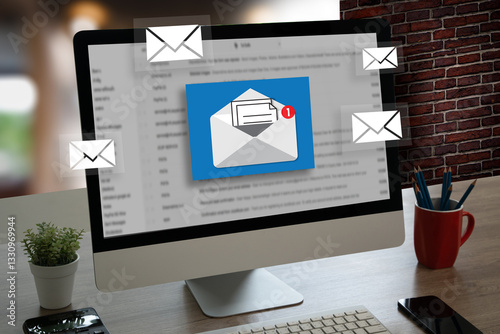 The watermark will not be included on Wall mural.: Mail communication connection message to mailing contacts phone global letters concept -