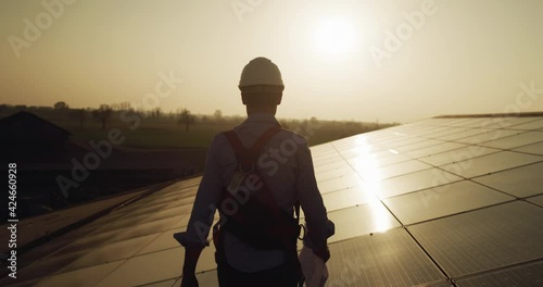 Maintenance assistance technical worker in uniform is smiling satisfied of his work after checking oWall mural