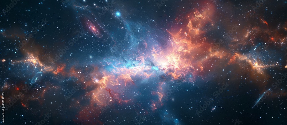 Wall mural majestic and expansive galaxy displaying an array of stars and colorful nebulas shining brightly in