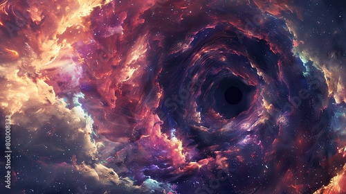 The watermark will not be included on Wall mural.: Majestic cosmic black hole engulfing vibrant galaxy clusters