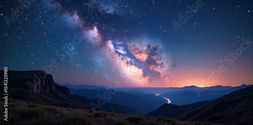 Wall mural majestic milky way arch, countless stars across panoramic landscape, night, space, dark