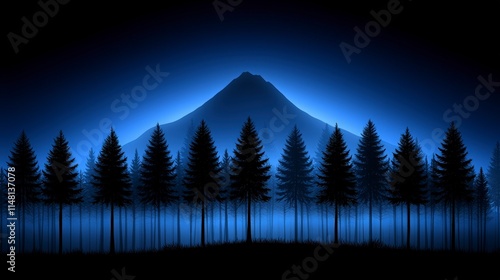 Wall mural majestic mountain forest night scene dark blue nature wallpaper