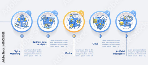 Wall mural : Major digital skills circle infographic template - computer literacy - data visualization with 5 steps