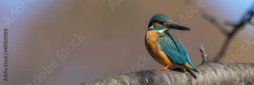 The watermark will not be included on Wall mural.: Male common kingfisher perching image with copy space -
