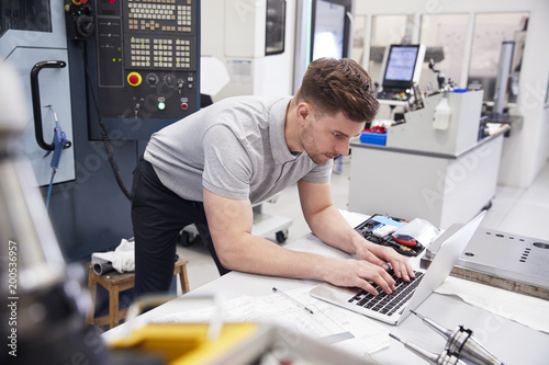 Wall mural male engineer using cad programming software on laptop - Wall murals Wall mural male engineer using cad programming software on laptop - Wall murals