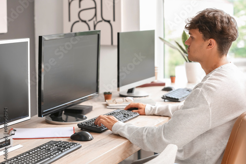 Wall mural male programmer working with computer at table in office - Wall murals Wall mural male programmer working with computer at table in office - Wall murals