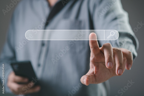 Wall mural man's hands are finger point to searching for information. using search console with your website. d - Wall murals Wall mural man's hands are finger point to searching for information. using search console with your website. d - Wall murals
