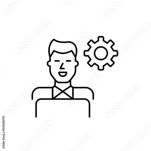 Wall mural man at laptop and cogwheel. remote tech support, software development, system configuration and it m - Wall murals Wall mural man at laptop and cogwheel. remote tech support, software development, system configuration and it m - Wall murals