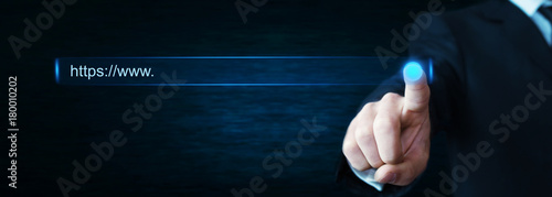 Wall mural : Man hand touching https address -