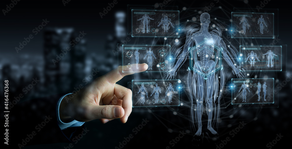 Man hand using digital x-ray human body holographic scan projection 3d renderingWall mural