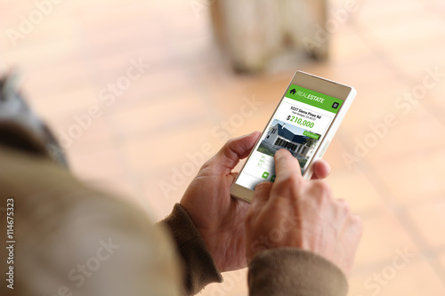 Wall mural man hands searching property on the screen - Wall murals Wall mural man hands searching property on the screen - Wall murals