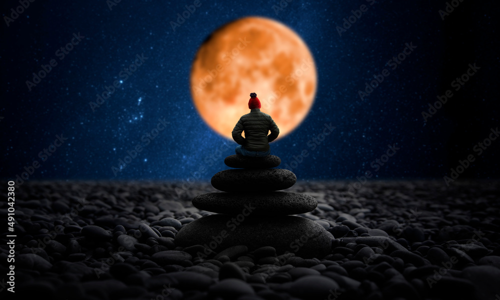 The watermark will not be included on Wall mural.: Man observes the space on the trunk of a large tree