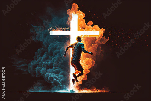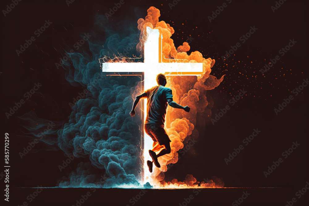 The watermark will not be included on Wall mural.: Man running into cross easter sunday special generative ai