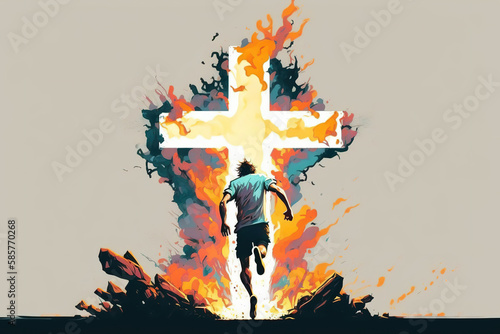 The watermark will not be included on Wall mural.: Man running into cross easter sunday special generative ai