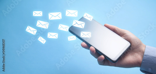 The watermark will not be included on Wall mural.: Man sending email by smartphone -