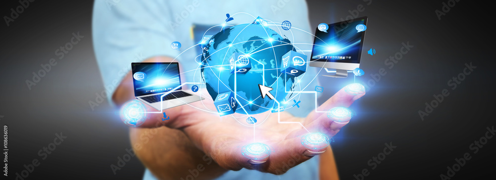 Wall mural man surfing on internet