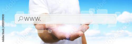 The watermark will not be included on Wall mural.: Man surfing on internet