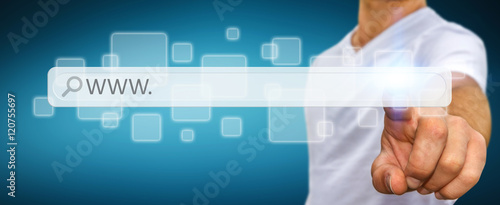 Wall mural : Man surfing on internet with digital tactile web address bar