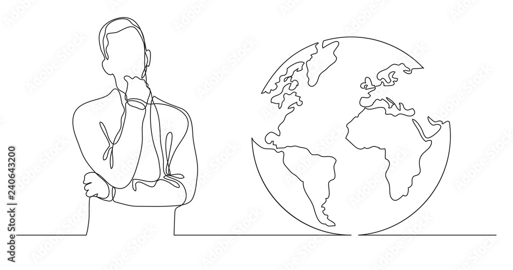 The watermark will not be included on Wall mural.: Man thinking about global issues - continuous line drawing