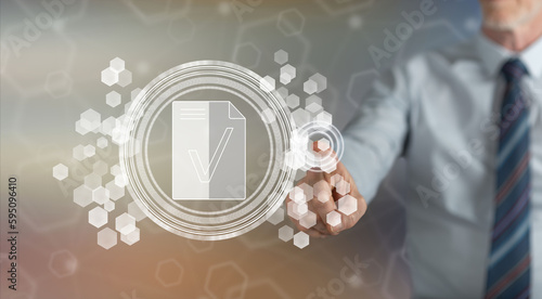 The watermark will not be included on Wall mural.: Man touching a document validation concept