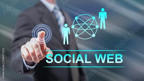 The watermark will not be included on Wall mural.: Man touching a social web concept