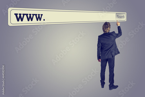 The watermark will not be included on Wall mural.: Man touching the button of a huge search bar