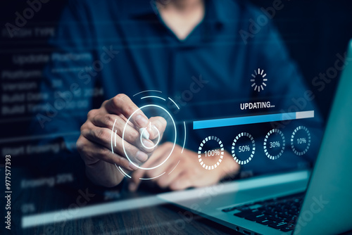 The watermark will not be included on Wall mural.: Man using laptop with update software computer program upgrade business technology internet, update