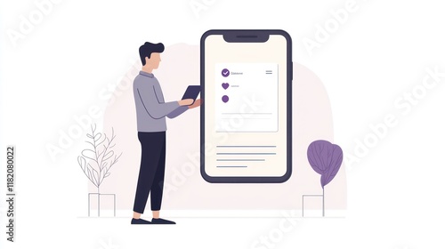 The watermark will not be included on Wall mural.: Man using mobile app for task management and productivity