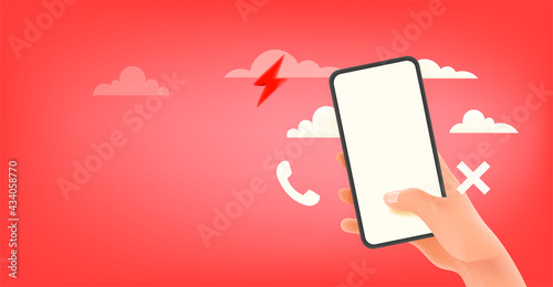 The watermark will not be included on Wall mural.: Man using modern smartphone with empty screen - red banner with copy space