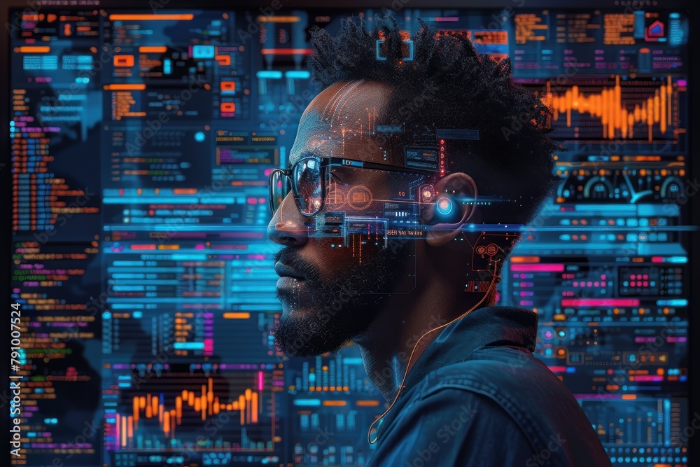 The watermark will not be included on Wall mural.: Man with glasses and beard working on computer