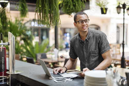 Wall mural man working laptop connecting networking concept - Wall murals Wall mural man working laptop connecting networking concept - Wall murals