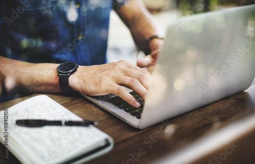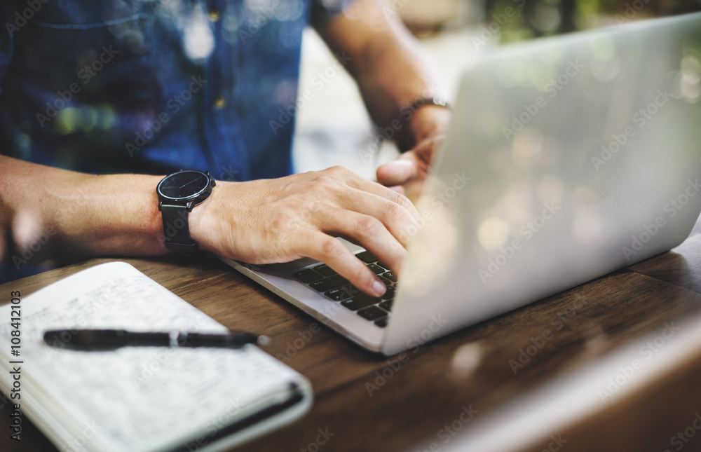 The watermark will not be included on Wall mural.: Man working laptop connecting networking concept