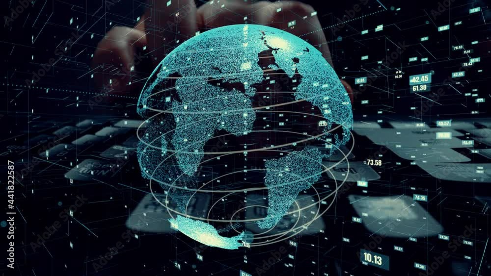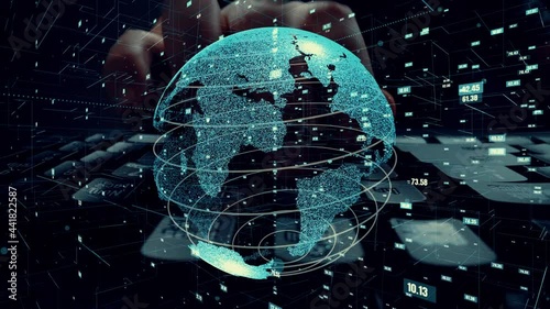 Man working on computer with graphic of mathematics coding modernization showing concept computer soWall mural