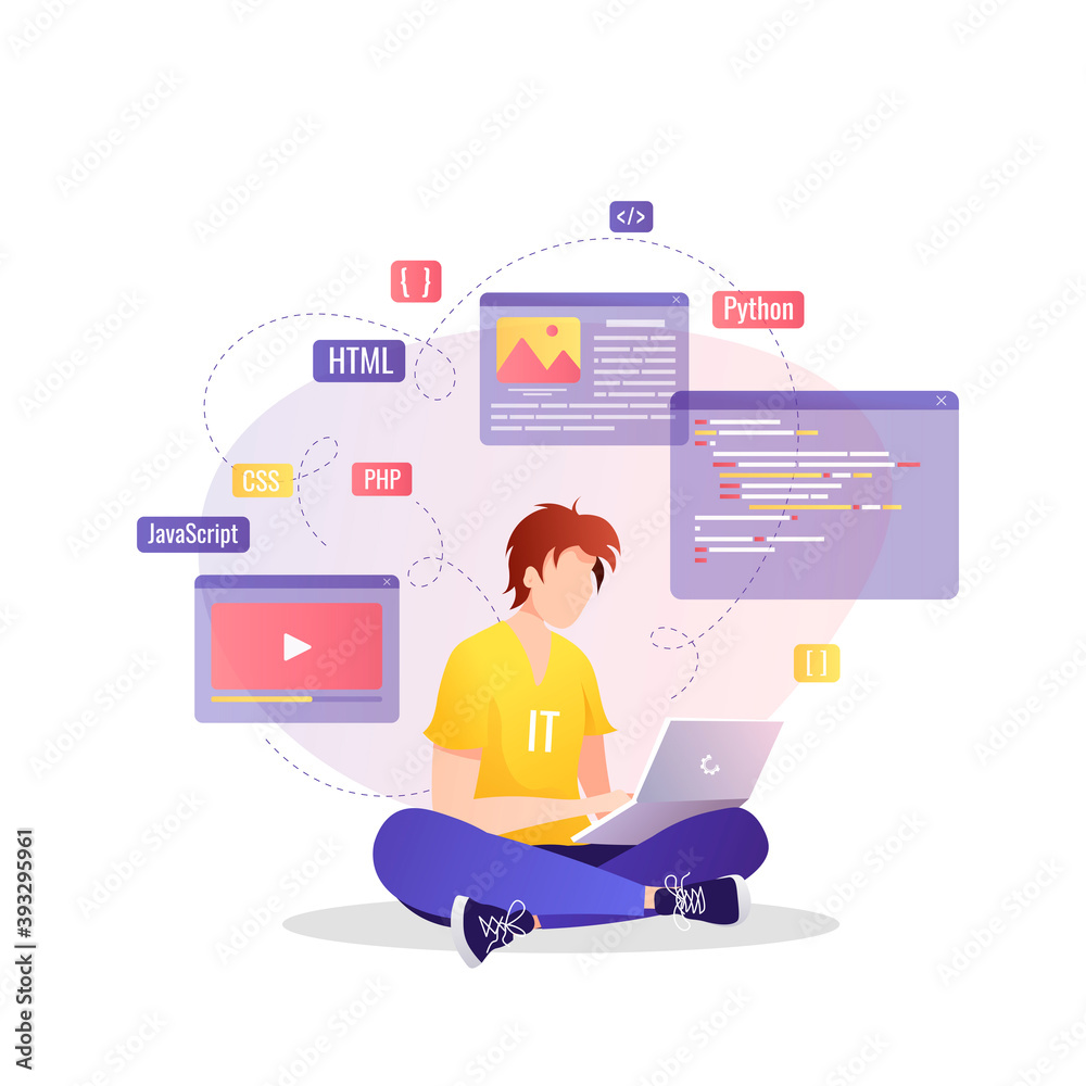 Wall mural man working with laptop on the website development. website developer, web agency, programmer and co - Wall murals Wall mural man working with laptop on the website development. website developer, web agency, programmer and co - Wall murals