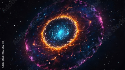 Wall mural : Mandala with expanding galaxy patterns and star orbits, symbolizing the boundless energy of the univ