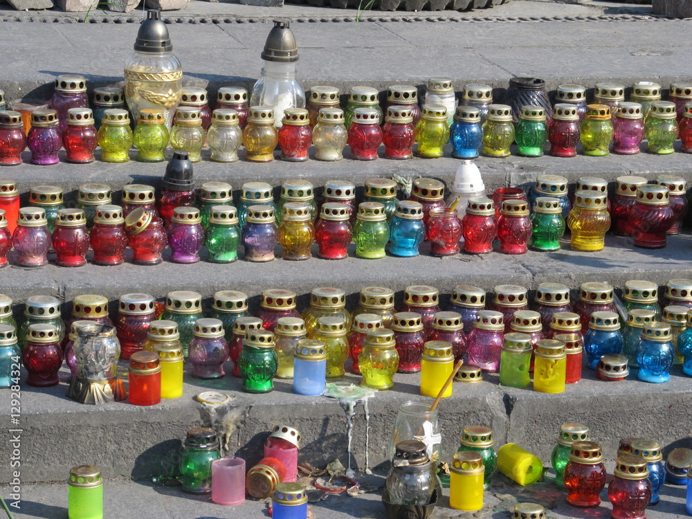 Wall mural many colored grave lights on the ground ... to always remember - Wall murals Wall mural many colored grave lights on the ground ... to always remember - Wall murals