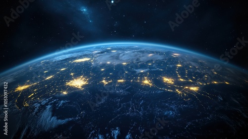 Wall mural : Map of continents highlighting the interconnectedness of global networks and technologies