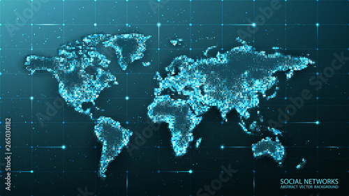 Wall mural : Map of the planet - world map - global social network - future - vector - blue futuristic background with