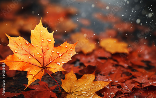Wall mural : Maple leaf in autumn with maple tree under sunlight background