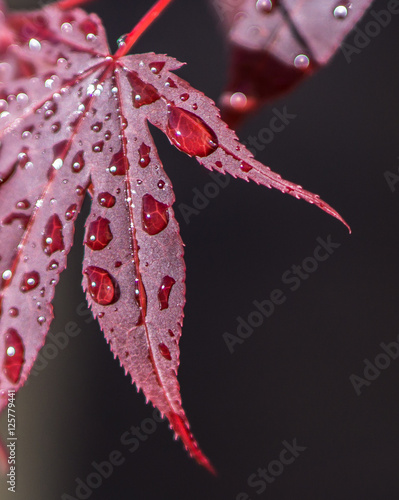 The watermark will not be included on Wall mural.: Maple leaf with rain drops
