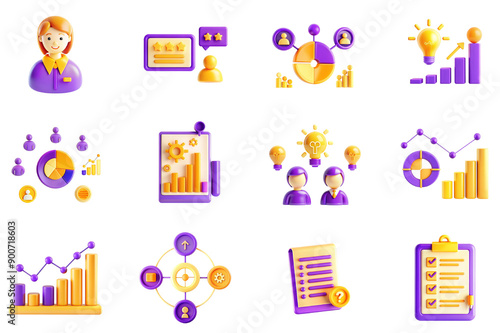 The watermark will not be included on Wall mural.: Market research concept of 3d icons set in modern web design - pack isolated objects of analyst, clie
